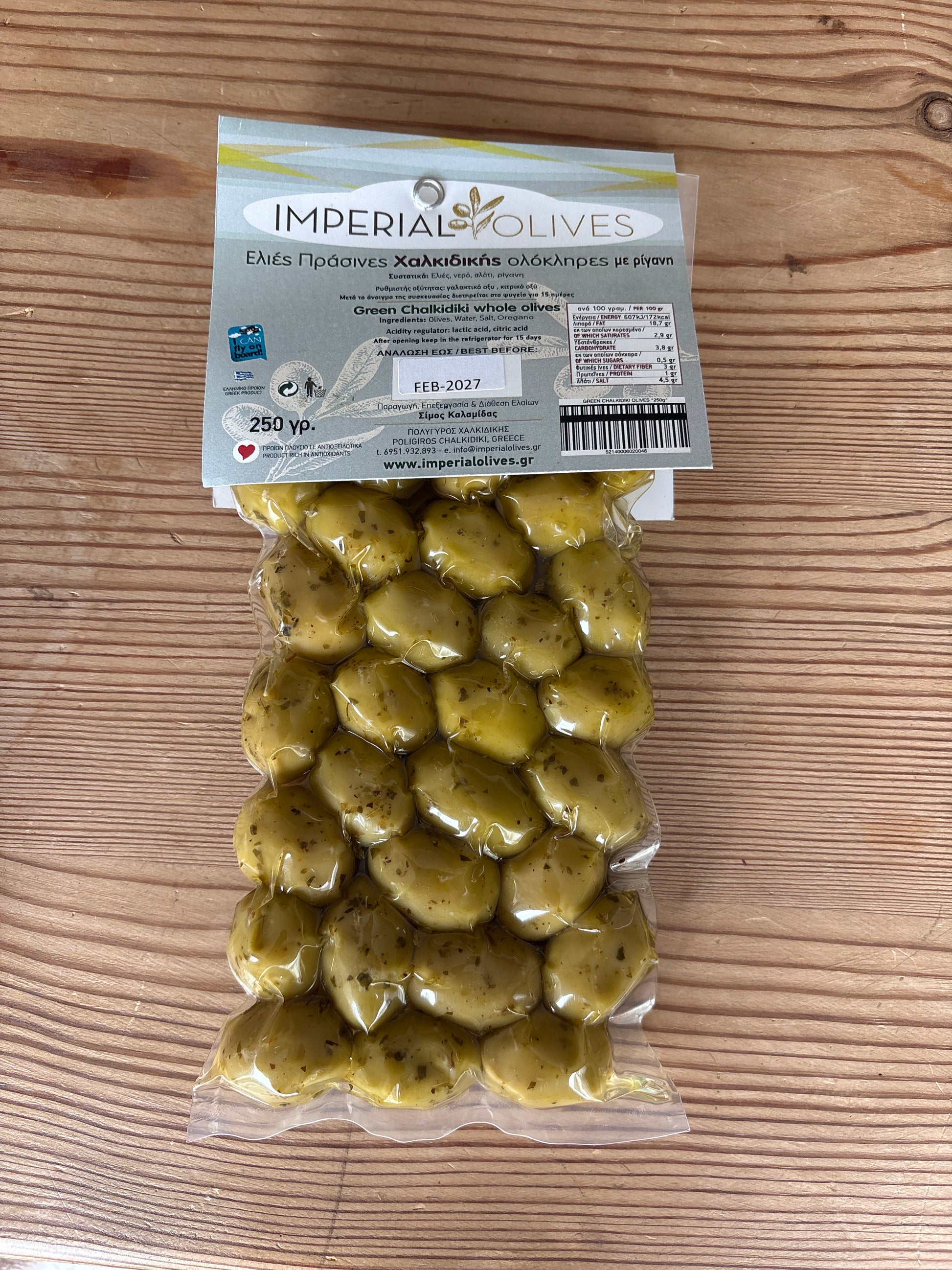 Gröna Oliver med oregano från Chalkidiki, 250gr i vacuum förpackning